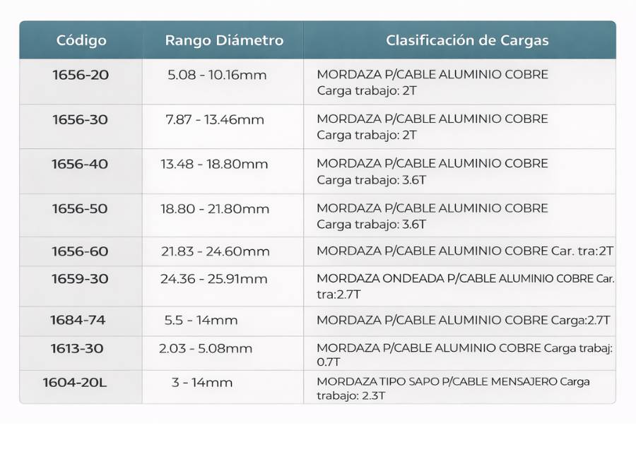 Diámetro de la cuerda: 8 mm ≤ Ø ≤ 13 mm