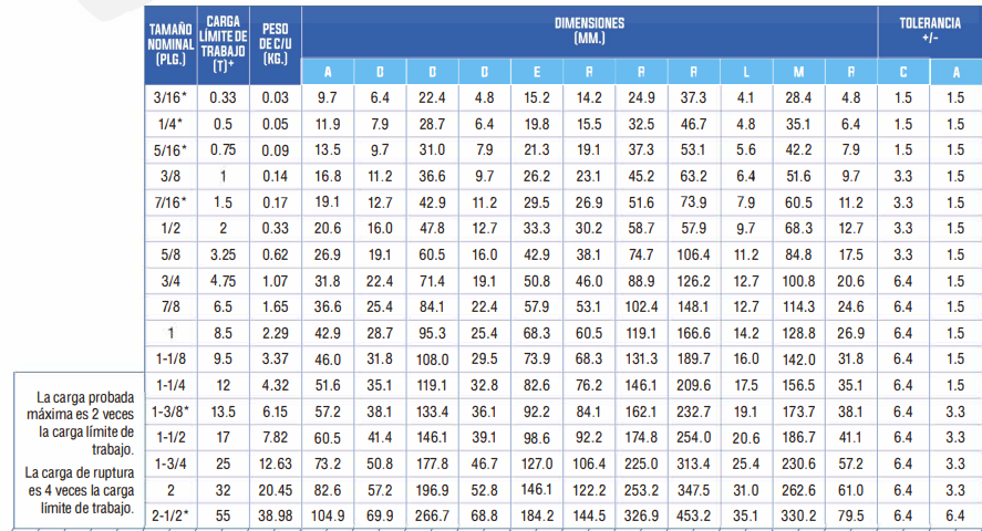 para resistir la acción corrosiva y oxidante. Recomendados para tracción en línea recta, su carga de trabajo